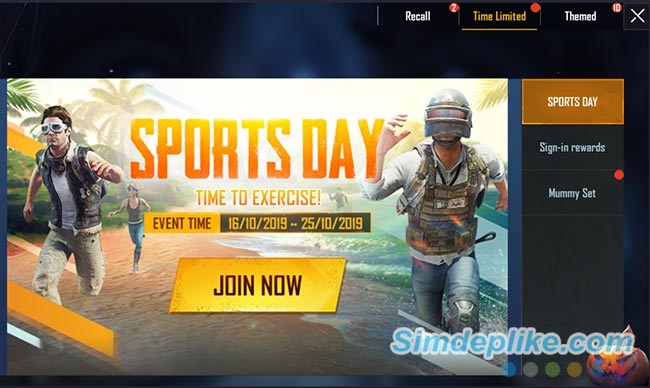 Sự kiện lần này Tencent mang tới cho người chơi Pubg Mobile có tên là Sports Day – một dạng sự kiện mà khi người chơi khi hoàn thành nhiệm vụ, họ sẽ nhận được những số điểm kinh nghiệm nhất định và một số skin miễn phí vô cùng hấp dẫn khác.