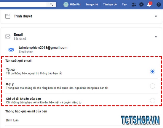 – Tất cả: Gửi tất cả các thông tin đến hòm thư, ngoại trừ các thông tin bạn tắt.