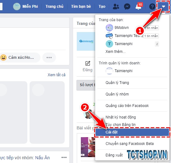 Bước 2: Click Tùy chọn trên thanh công cụ có biểu tượng hình tam giác chỉ xuống, Sau đó chọn Account Settings (Cài đặt).